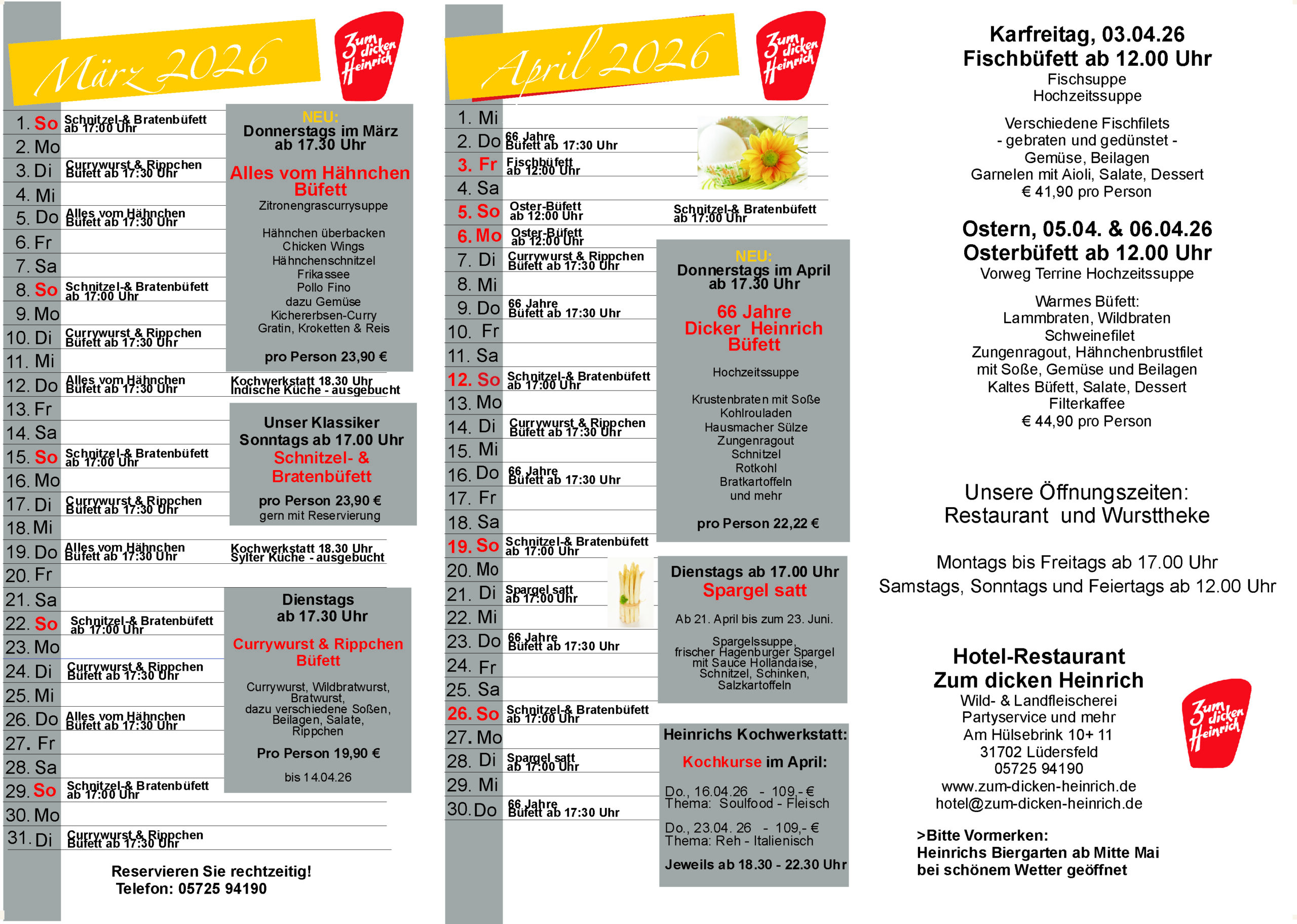 Im schönen Schaumburger Land liegt in idyllischer Umgebung in der Nähe von Stadthagen, zwischen dem Steinhuder Meer, Bückeburg und Bad Nenndorf, unser familiengeführtes Hotel-Restaurant Zum dicken Heinrich. Außerdem betreiben wir das komfortable Hotel Heinrichs Gästehof, eine Wild- und Landfleischerei sowie einen Partyservice.