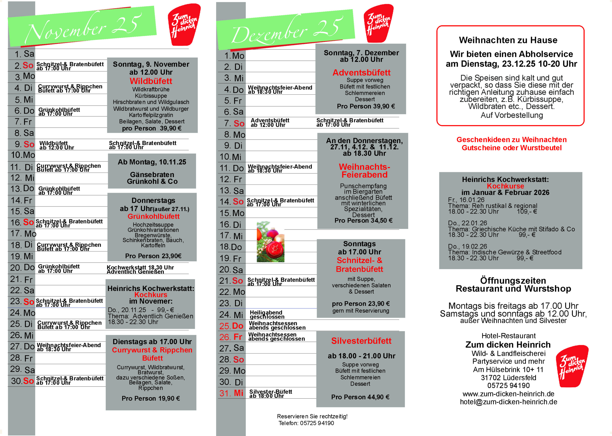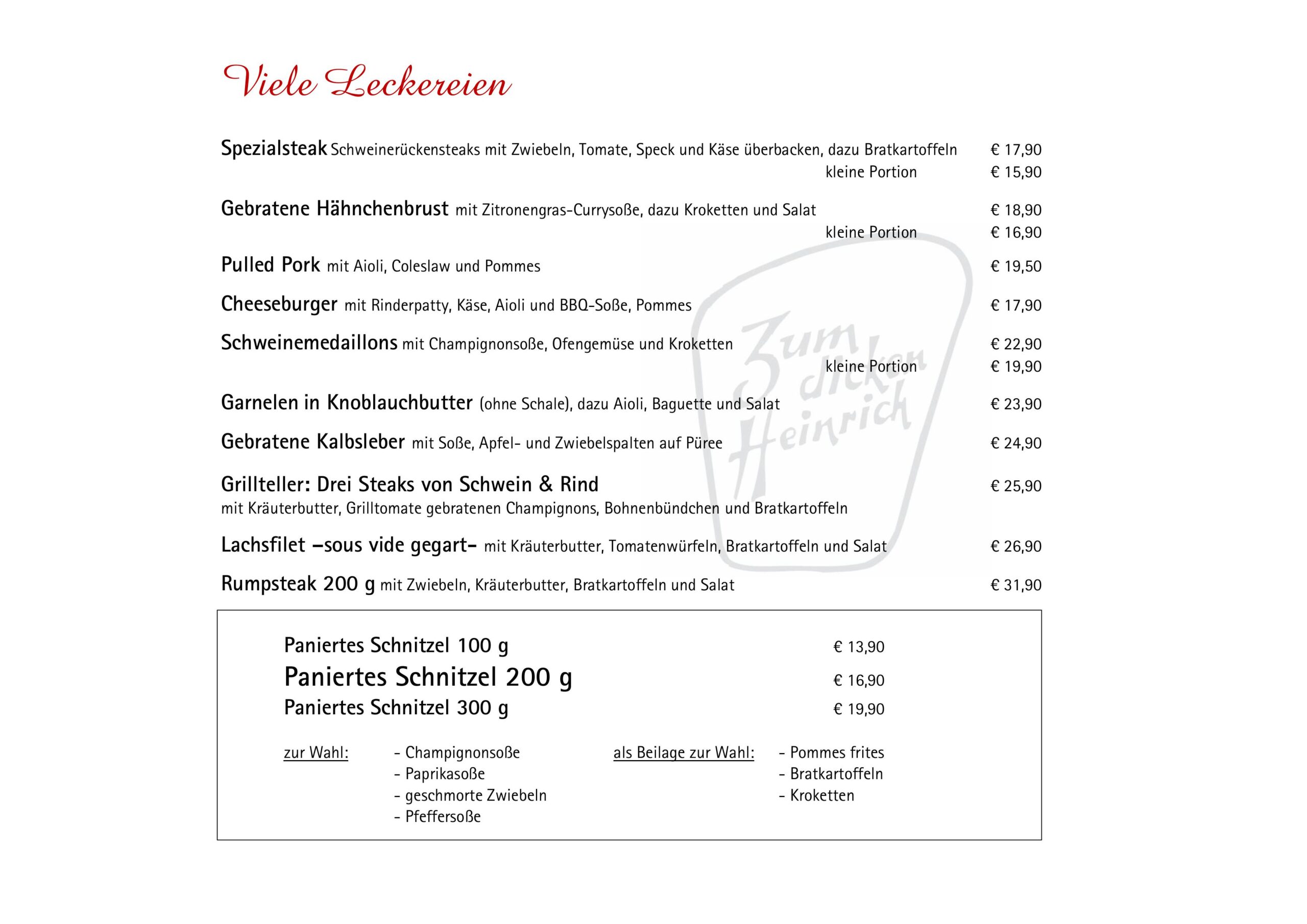 Überzeugen Sie sich selbst und statten Sie dem „Dicken Heinrich“ einen Besuch ab. Sie finden unser Restaurant in Lüdersfeld bei Stadthagen.