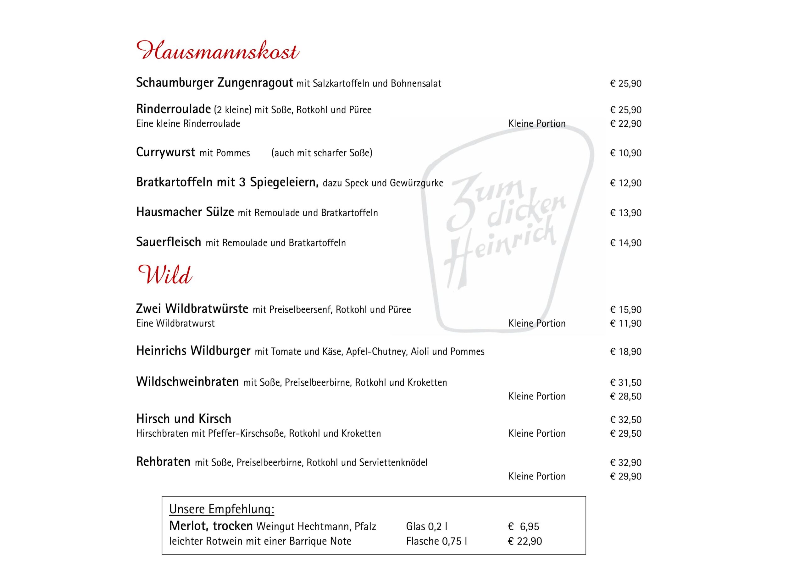 1. Eine vorzügliche Küche, eine Auswahl an Weinen und aufmerksamer Service erwartet Sie in unserem Restaurant Zum dicken Heinrich, nur wenige Autominuten von Stadthagen entfernt.